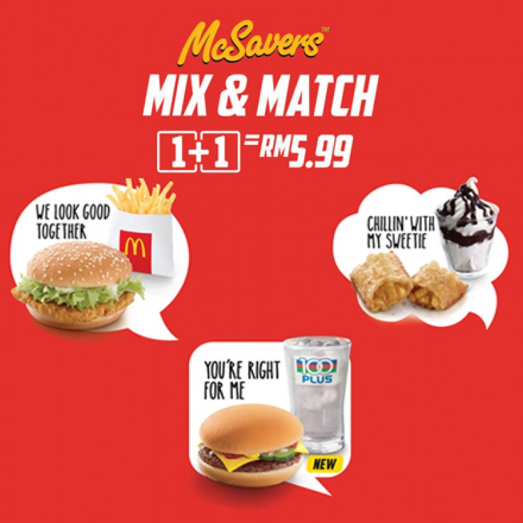 Mcdonalds is back with the mcsavers mix match 1 1 set where you can choose one food item from the list on the left and then another. At RM599 McSavers Mix Match is the best value meal. Get 2 for 6 mix match deal at mcdonalds.